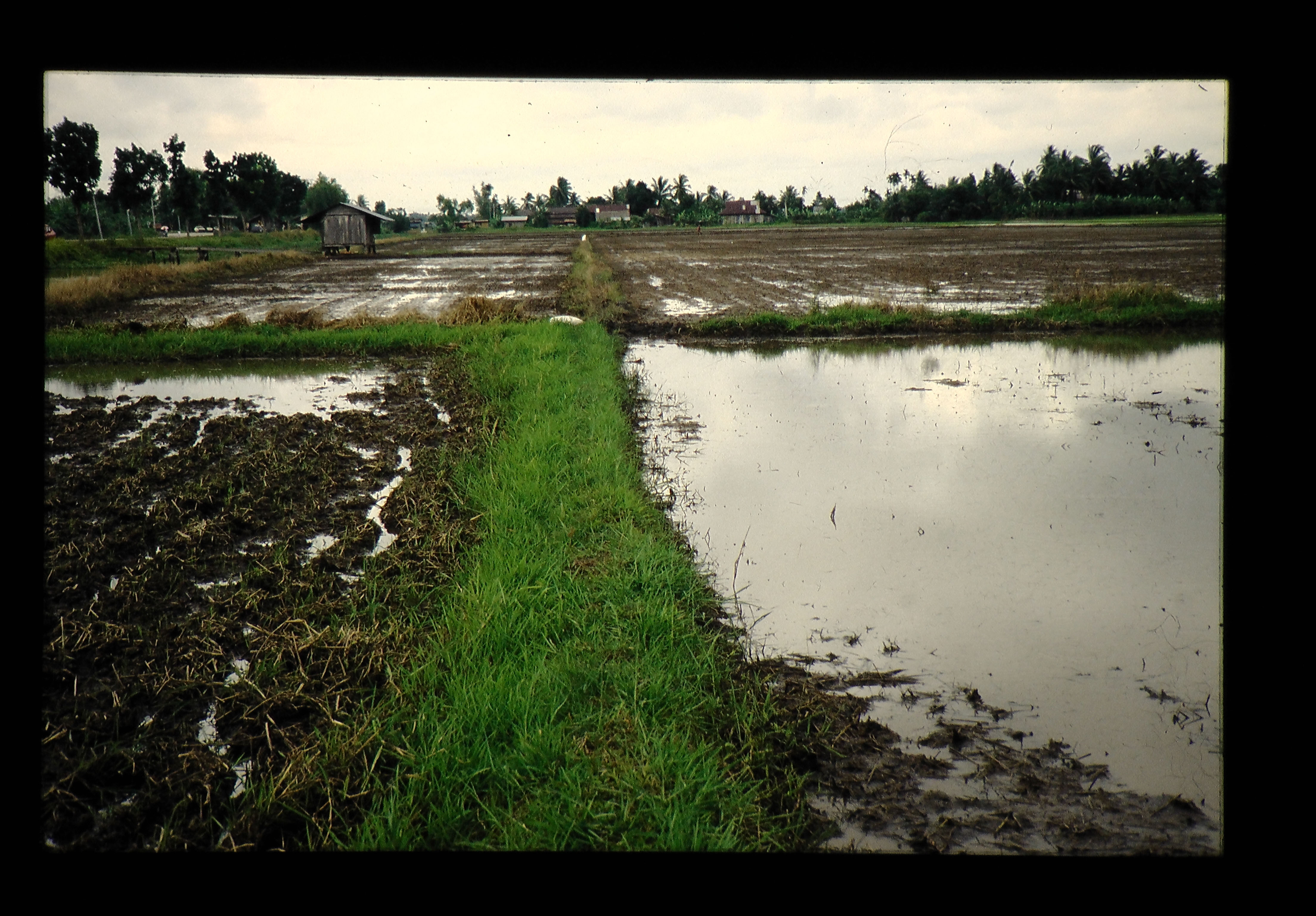 1970年代の後半にマレイシア・ムダ地区では、直播栽培が急速に普及し、1988年にはオフシーズン作で水稲作付面積の80%が直播栽培となった。これまでに熱帯農業研究センターがマレイシアで推進してきた水稲二期作技術体系は移植栽培を前提とするものであったため、その基礎からすなわち直播栽培を前提とした技術体系の構築を図る必要が生じた。また、直播栽培は安価な主食の供給を推進する開発途上国政府の政策とあいまって、今後の熱帯における水稲二期作の主要な栽培技術となることが予測された。しかしながら、基盤整備が未だ十分でない熱帯の開発途上国における水稲直播栽培は今までの移植栽培とは異なった多くの熱帯特有の問題をかかえており、例えば雑草防除技術、効率的水管理技術、直播用水稲品種の特性の解明、機械化整地作業技術の確立など、緊急に解決を要する諸問題が山積している。そこで、熱研センターは1988年より5カ年間の予定で熱帯農業プロジェクト研究を、マレイシア・ムダ農業開発公団と共同で開始した。