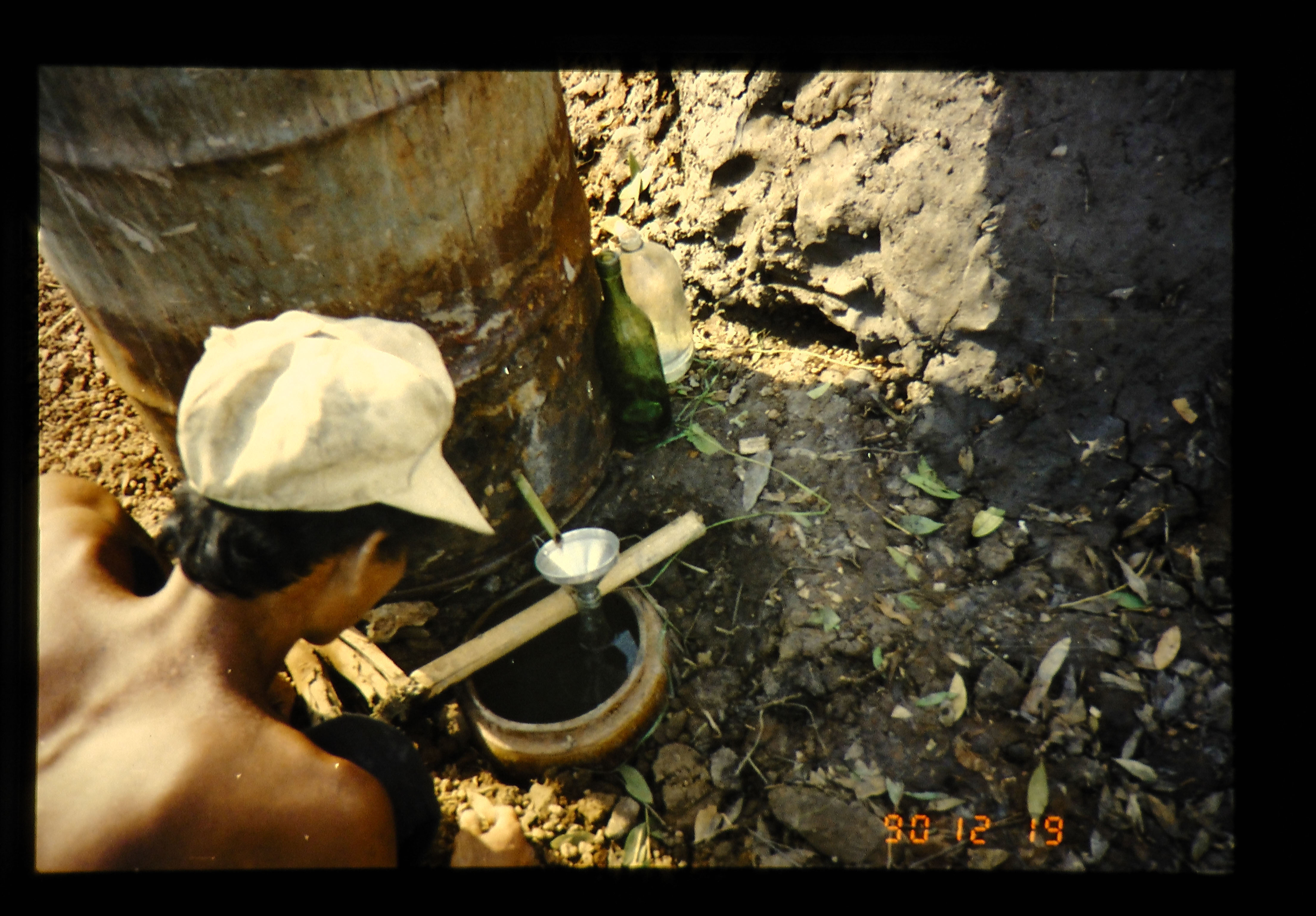 メラロイカの葉からカヤプテ油をとる。