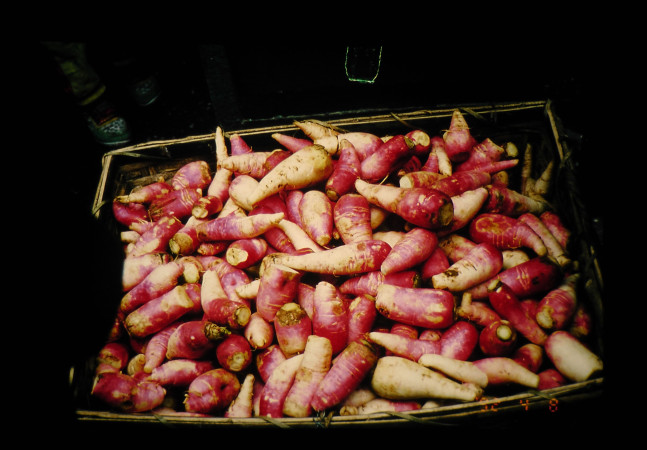 赤ダイコン。市場に見かける。20㎝程の長さ。