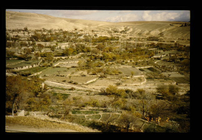 植生の極めて緑の少ない乾燥地にまるでオアシスでもみるように、やや低地に緑地帯がみられ、そこには、果樹の栽培がみられる。