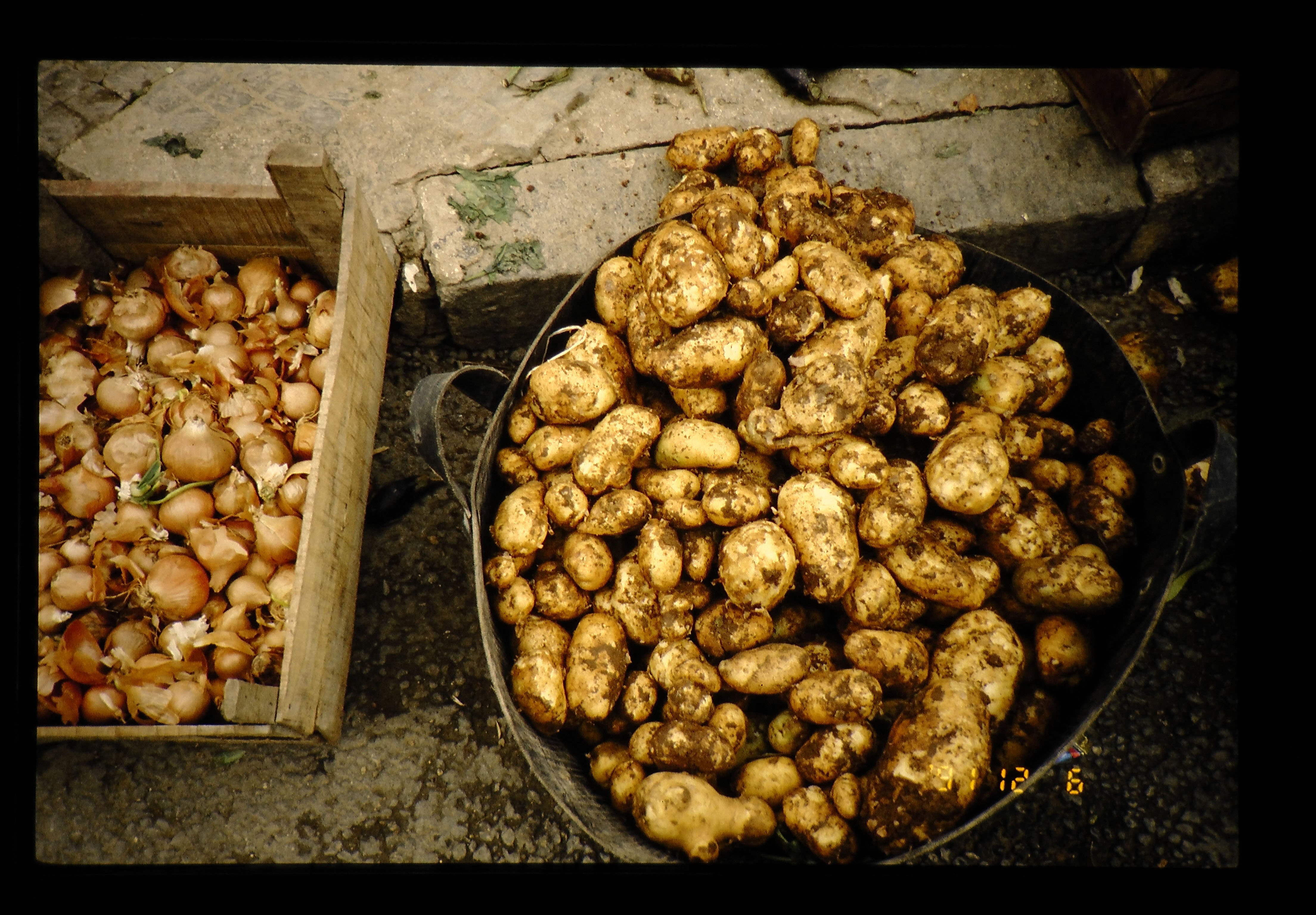 シリアのアレッポ。裏町の通りに露天の八百屋の品物