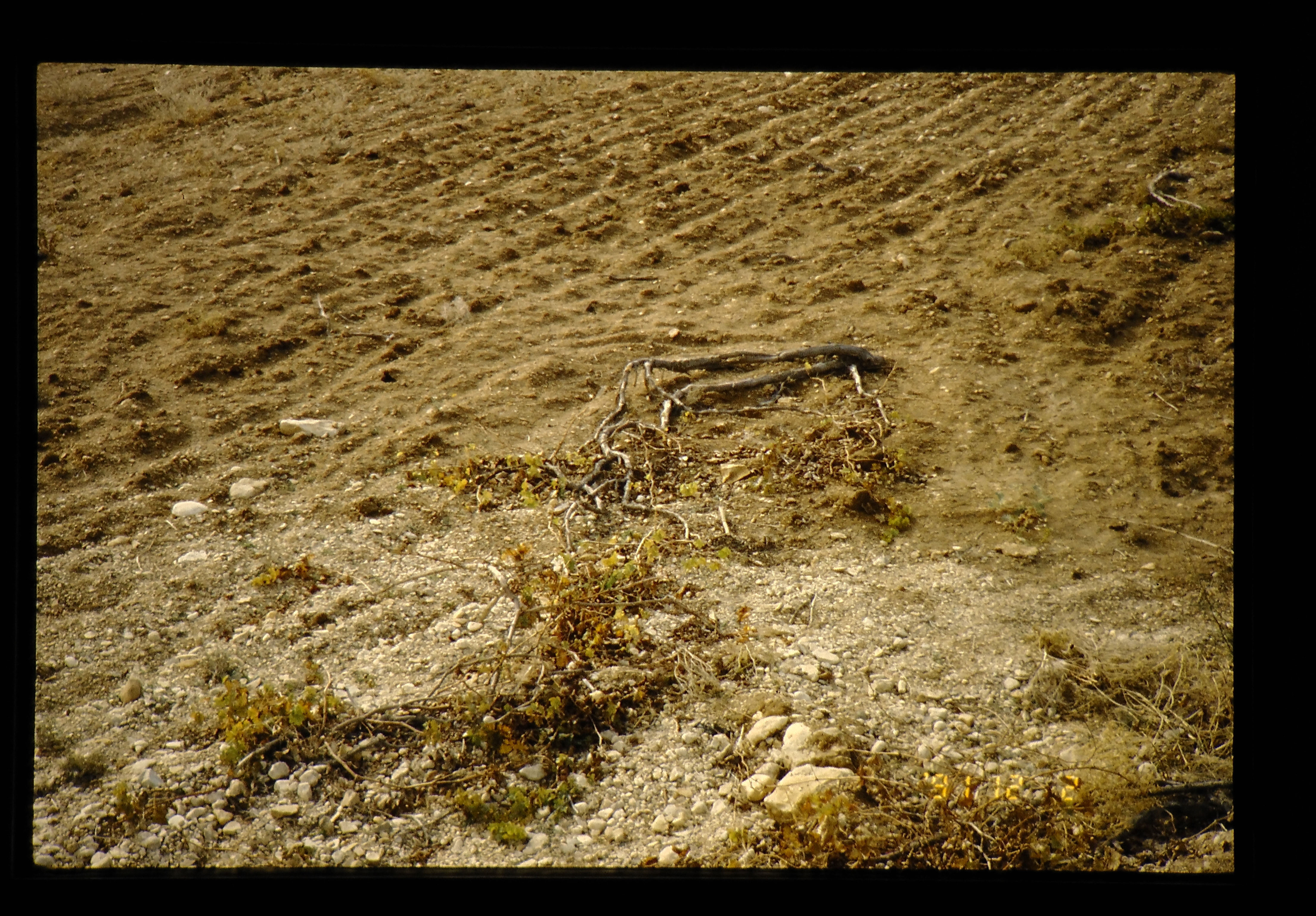 棚や支柱をしない放任栽培のブドウは、まるで地面にへばりつくように生きている。