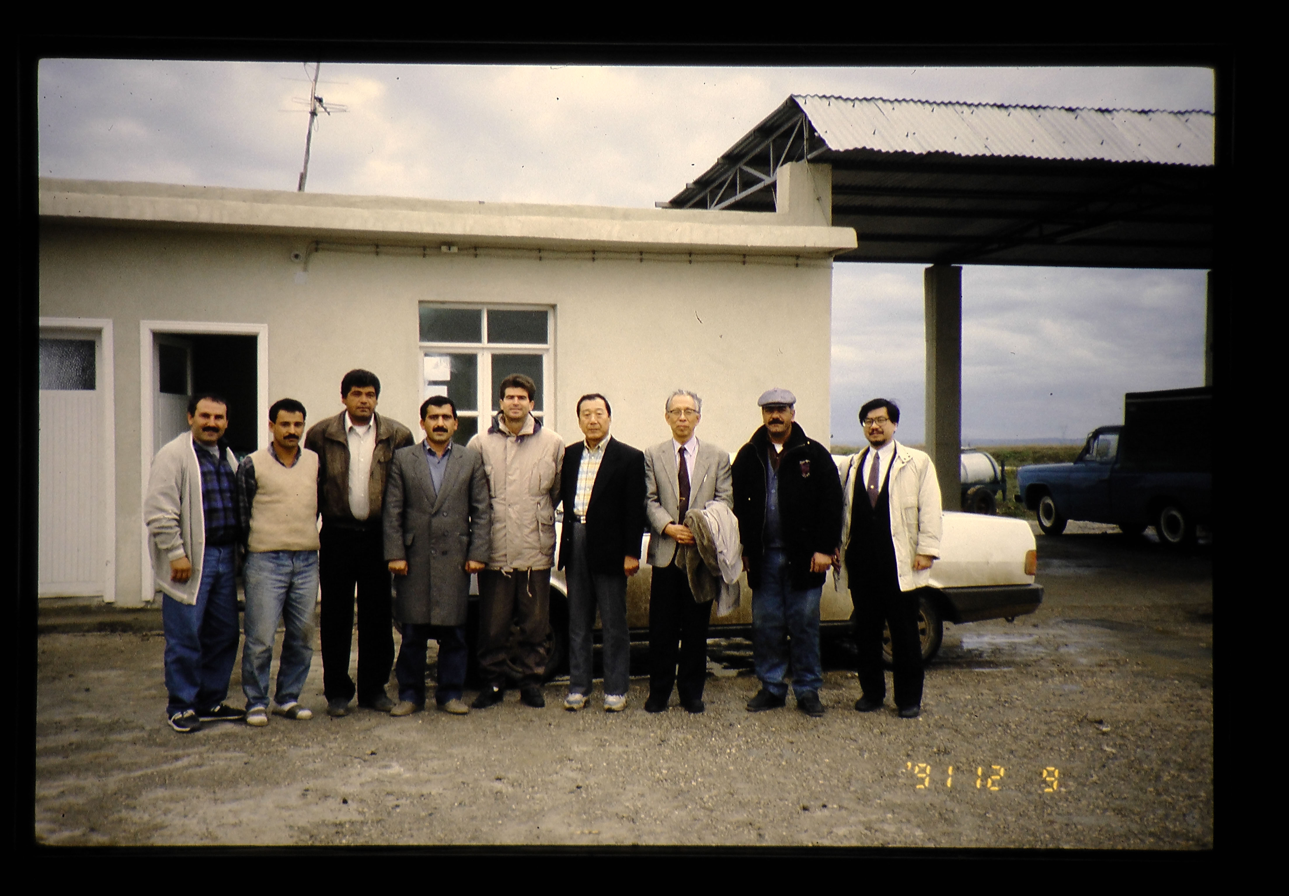 トルコのアダナでJICAのプロジェクト、トルコ半乾燥地農業現地実証が行なわれていた。左端、田中敬一技官を除いて現地スタッフ。左より三人目、磯田竜三、坂田公男さん。