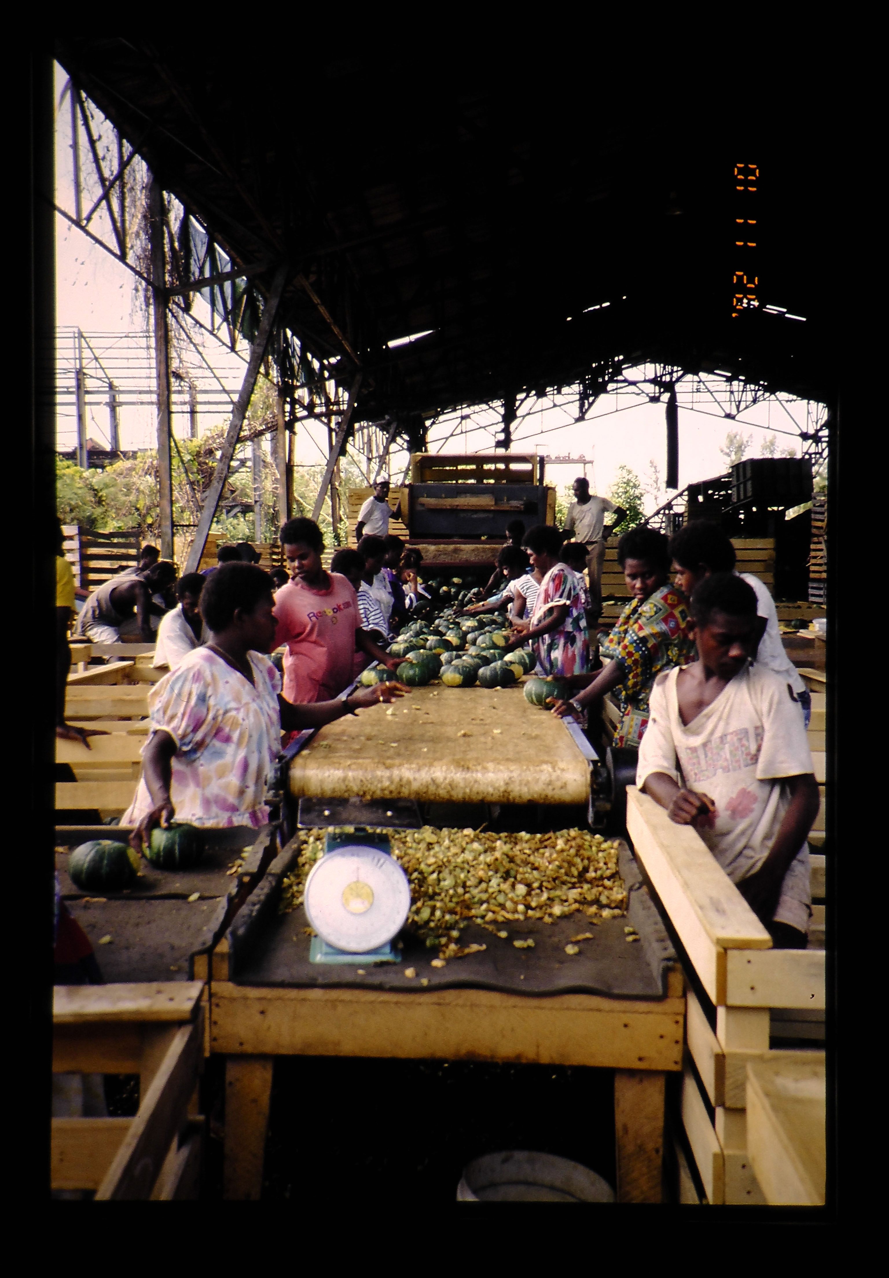 カボチャを栽培。形、大きさを選別して箱詰めし、日本に輸出する。