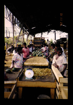 この地域の国々が独立を勝ち得たのは比較的新しく1960年代以降のことである。しかし、いまなお海外領や保護領のままの地域も多い。ほとんどが大陸の先進地域から遠く離れた群島国家で、いろいろな制約をかかえているため経済的自立が困難な状況にある。例えば、市場の形成一つをみても、この地域の人口の規模は余りにも小さい。全部合わせても622万人(1990年)にすぎない。世界の0.1%である。パプア·ニューギニアを除けばたったの235万人である。陸地の大きさはというと54万km2で、世界の0.4%。パプア·ニューギニアを除くと9万km2で、日本の1/4にすぎない。これが地球表面の1/3を占めようかという広大な海域に分散しているのである。どの国あるいは地域においても、人々は小さな集落単位に分散して、イモの栽培など農業を中心とした自給自足の生活を続けてきたのもうなずけよう。田部 昇氏は、こうした太平洋地域のおかれた状況をつぎのように述べている。「近年、アジア·太平洋地域の経済活力が注目され、二十一世紀に向けての太平洋構想が論議されている。しかし、ミクロネシア、メラネシア、ポリネシアで構成される南太平洋島しょ国地域は地域認識の枠組みに位置づけられていないうえ、また、経済圏概念ばかりでなく社会·文化概念としても十分な理解を得られていない。いわば陥没地域なのである」(アジ研ニュース No 67, 1986)。