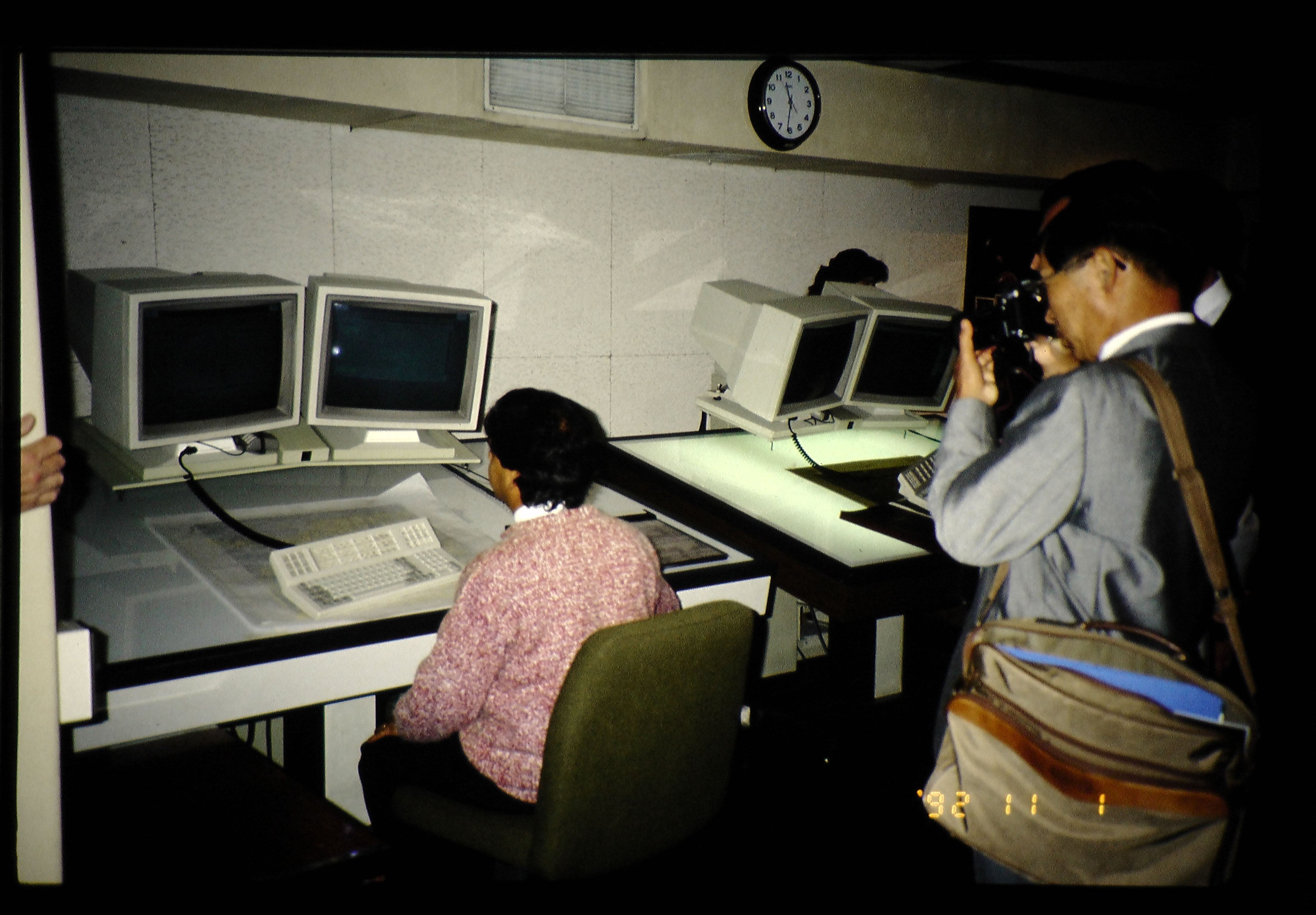 ここのシステムはツインモニターを使用していて、LANでいくつかのコンピュータと接続されている。