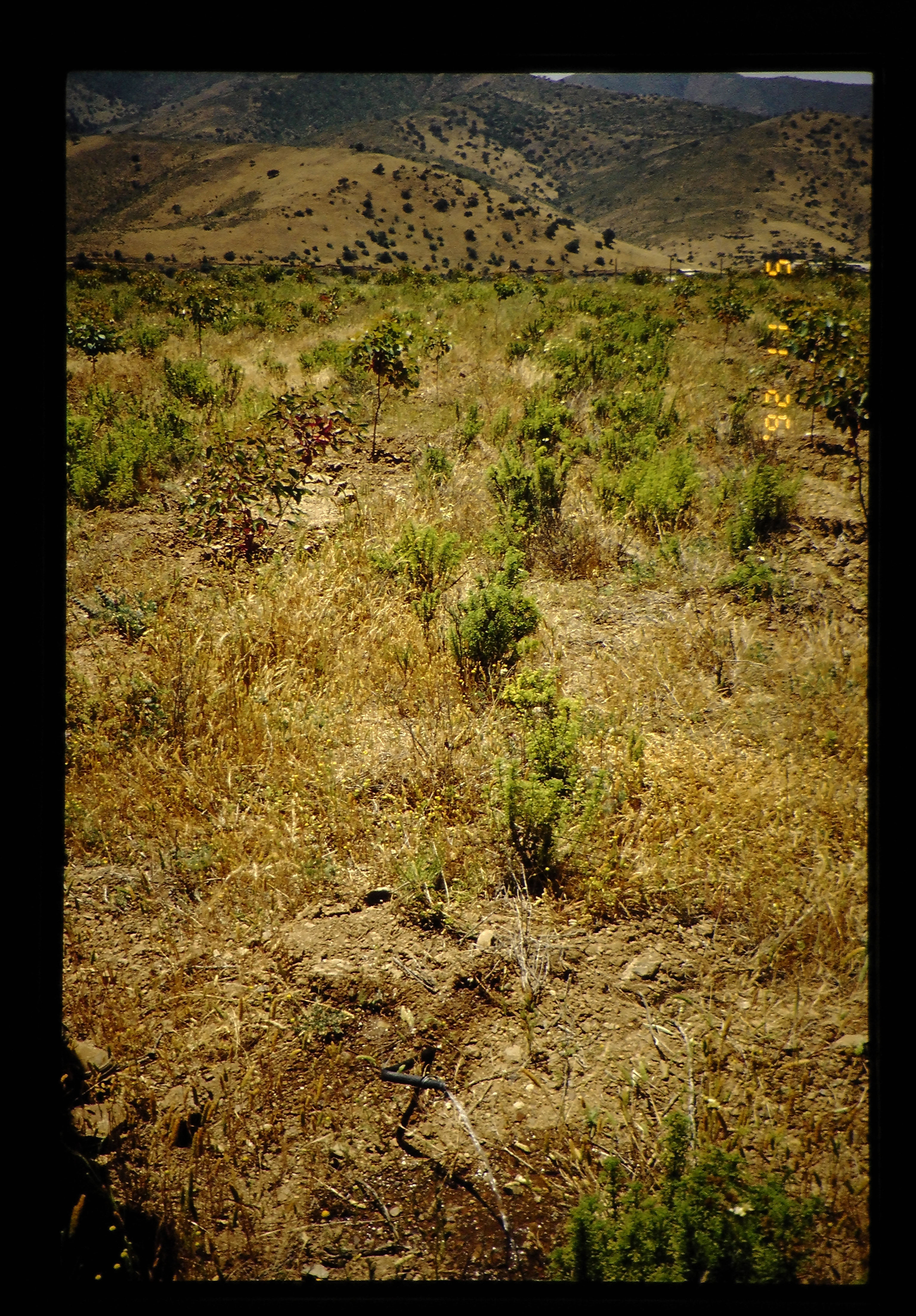 アカシアの植林試験。植林直後1-2年は潅漑している。