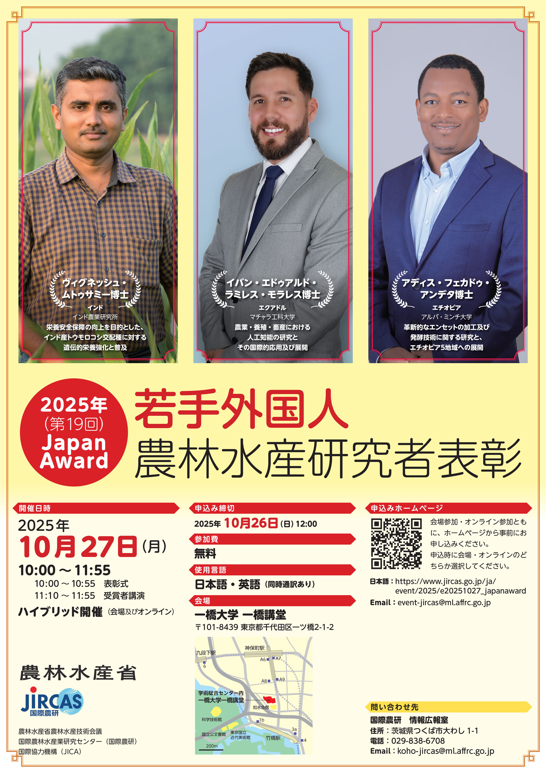 2025年(第19回)若手外国人農林水産研究者表彰(通称:Japan Award)