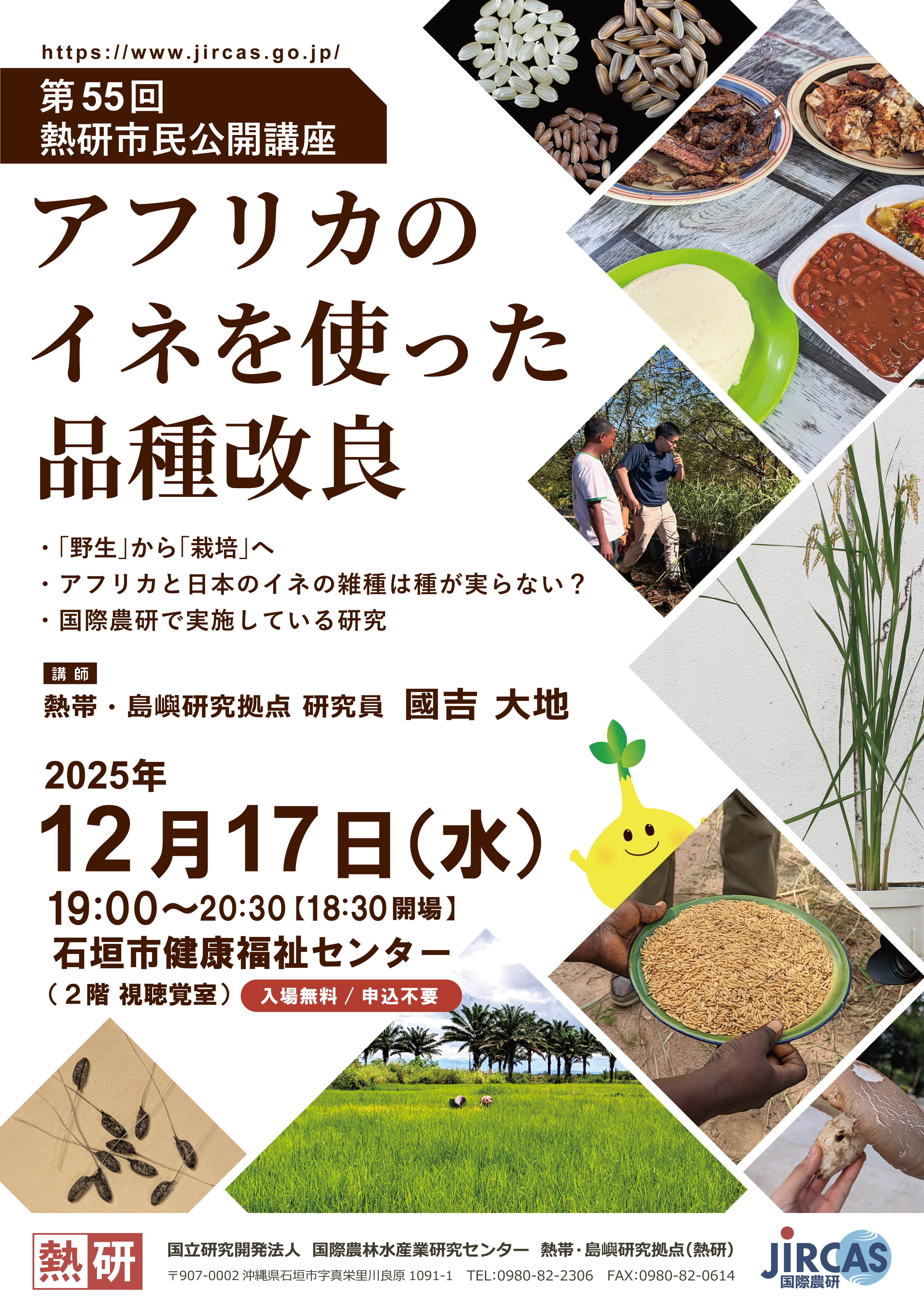 国際農研 熱帯・島嶼研究拠点(熱研)は、第55回熱研市民公開講座「アフリカのイネを使った品種改良」を、令和7年12月17日(水)に石垣市健康福祉センターで開催します。