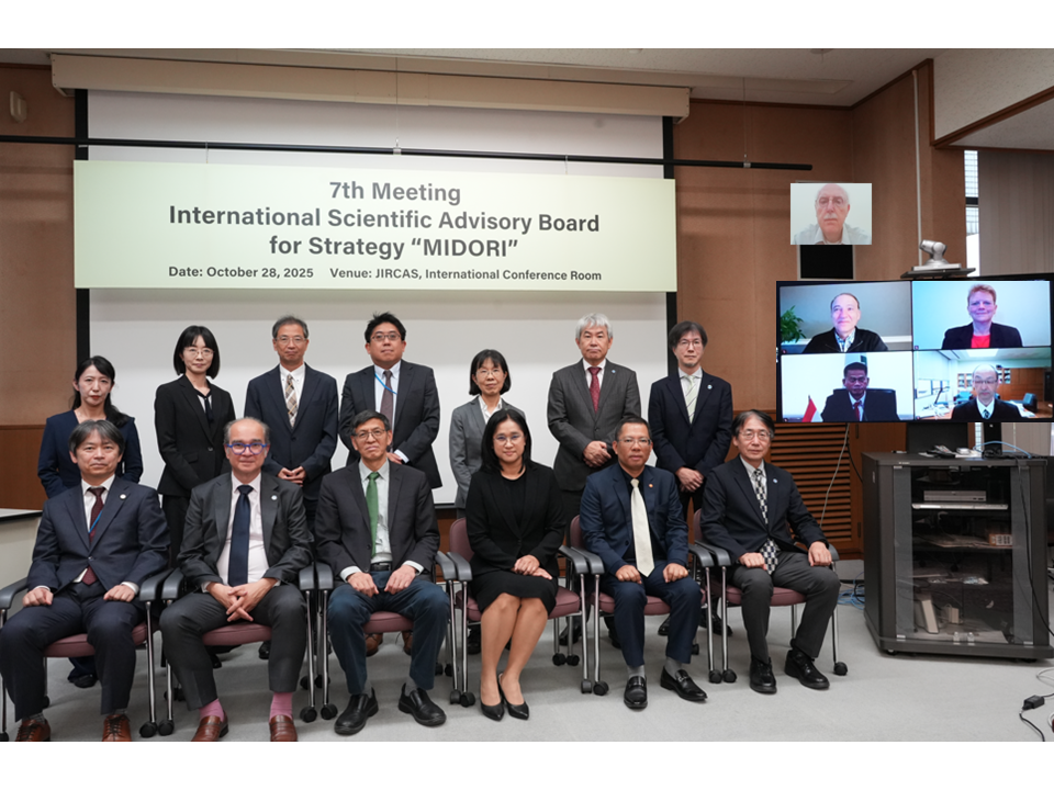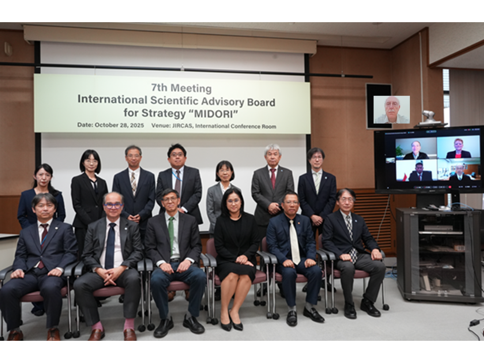 第7回目となる国際科学諮問委員会は令和7年10月28日に国際農研会議室(つくば市)にてハイブリッドで開催しました。冒頭、小山国際農研理事長及び佐藤農林水産省農林水産技術会議事務局研究総務官から開催挨拶があり、その後、農林水産省からは、「みどり戦略」の実施状況及び改定「日ASEANみどり協力プラン」についての説明がなされました。国際科学諮問委員会事務局(国際農研)からは、「アジアモンスーン地域の生産力向上と持続性の両立に資する技術カタログVer.4.0」について、10月初旬に公開したことを報告しました。また、プロジェクトの最終化に向けて、グリーンアジアの活動の全体報告書、間断かんがい技術、生物的硝化抑制(BNI)強化コムギ、及びイネいもち病抑制のための国際判別システムの活用について報告書案の概要を説明しました。