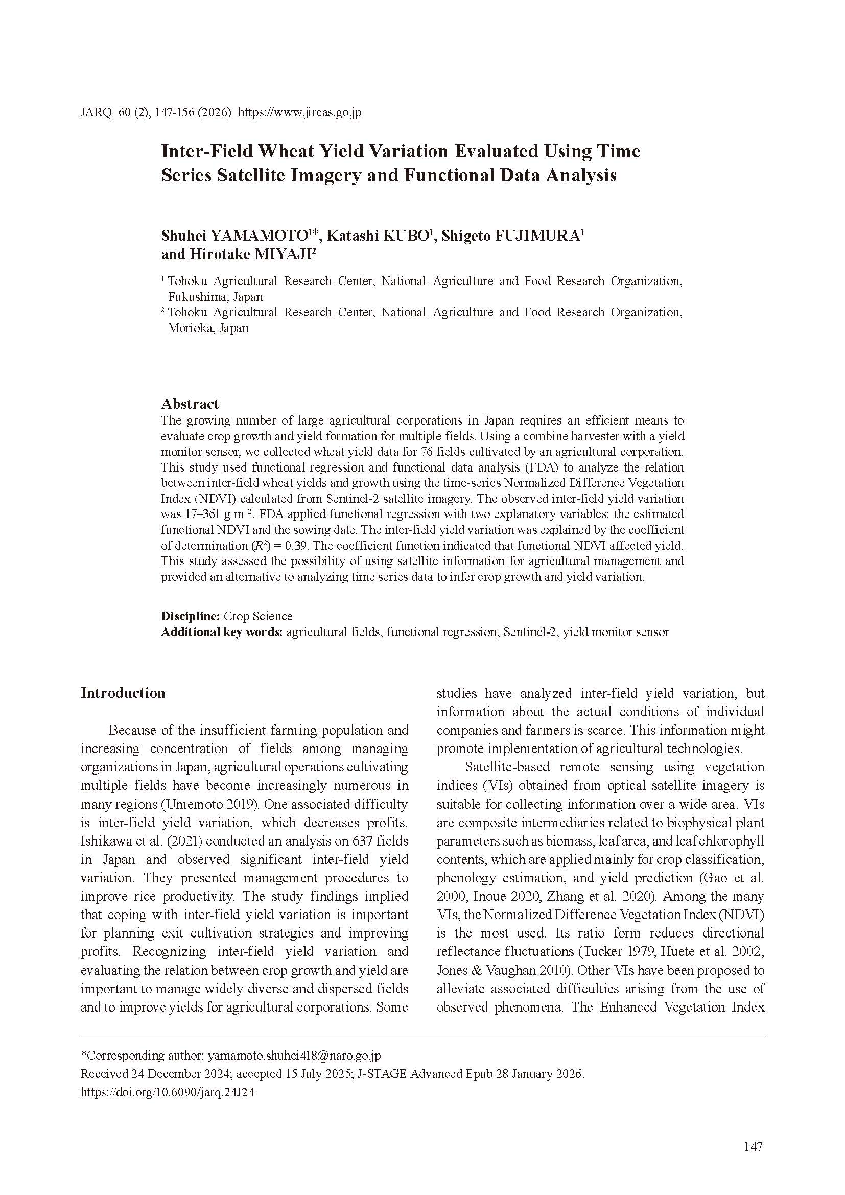 | 著者キーワード | agricultural fields functional regression Sentinel-2 yield monitor sensor |