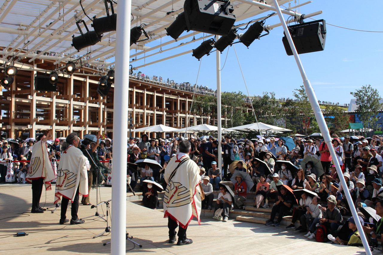 会場はベンチ席が満席となり、ポップアップステージ東内の周囲には立ち見の方も多数見られるなど、大変な盛況となりました。本イベントは、地球規模の課題解決や異文化交流を通じて、大阪・関西万博のテーマ「いのち輝く未来社会のデザイン」と高い親和性を有しており、日本の科学技術の国際的な発信や国際農研の活動に対する理解促進に資する貴重な機会となりました。