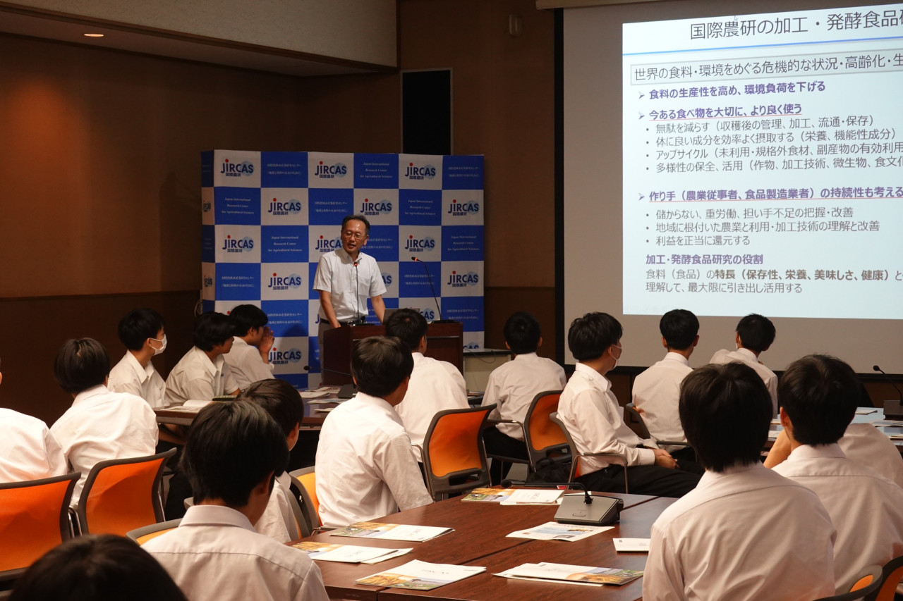 令和7年10月9日(木)、栃木県立真岡高等学校の1年生40名を国際農林水産業研究センター(JIRCAS)に迎え、未来科学人材アカデミー第12回講座を開講しました。