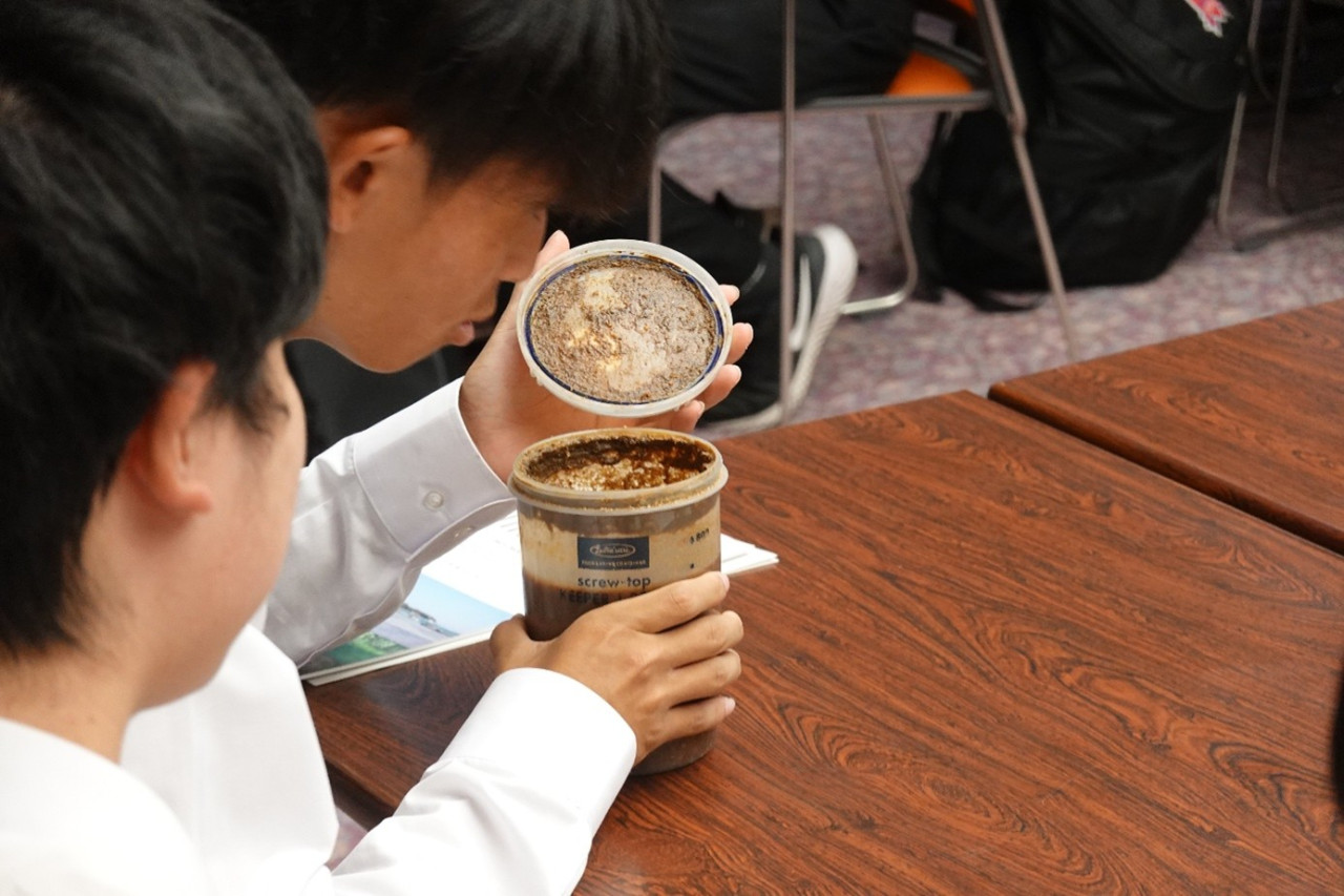 講義の後には、生徒から多くの質問が寄せられました。「パデークの安全を確保するために塩を多く使うとのことだったが、健康への影響は?」「麹菌は日本独自の技術なの?」「海外で危険な目にあったことはない?」など、活発な質疑応答が行われ、丸井主任研究員は一つひとつ丁寧に回答していました。生徒たちの関心の高さと、国際的な視野を広げようとする姿勢が印象的でした。
