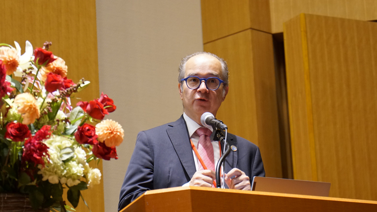 セッションIでは、Dr. Stefanos Fotiou(国連食料システム・コーディネーションハブ 事務局長)、Dr. Pham Quang Minh(ASEAN事務局 食料・農業・林業担当課長)、農林水産省の萩原英樹参事官による基調講演の後、舟木康郎グリーンアジアプロジェクトリーダー(PL)が登壇し、グローバル、日本、ASEANの連携の観点からプロジェクトの設立経緯と活動概要を紹介しました。
