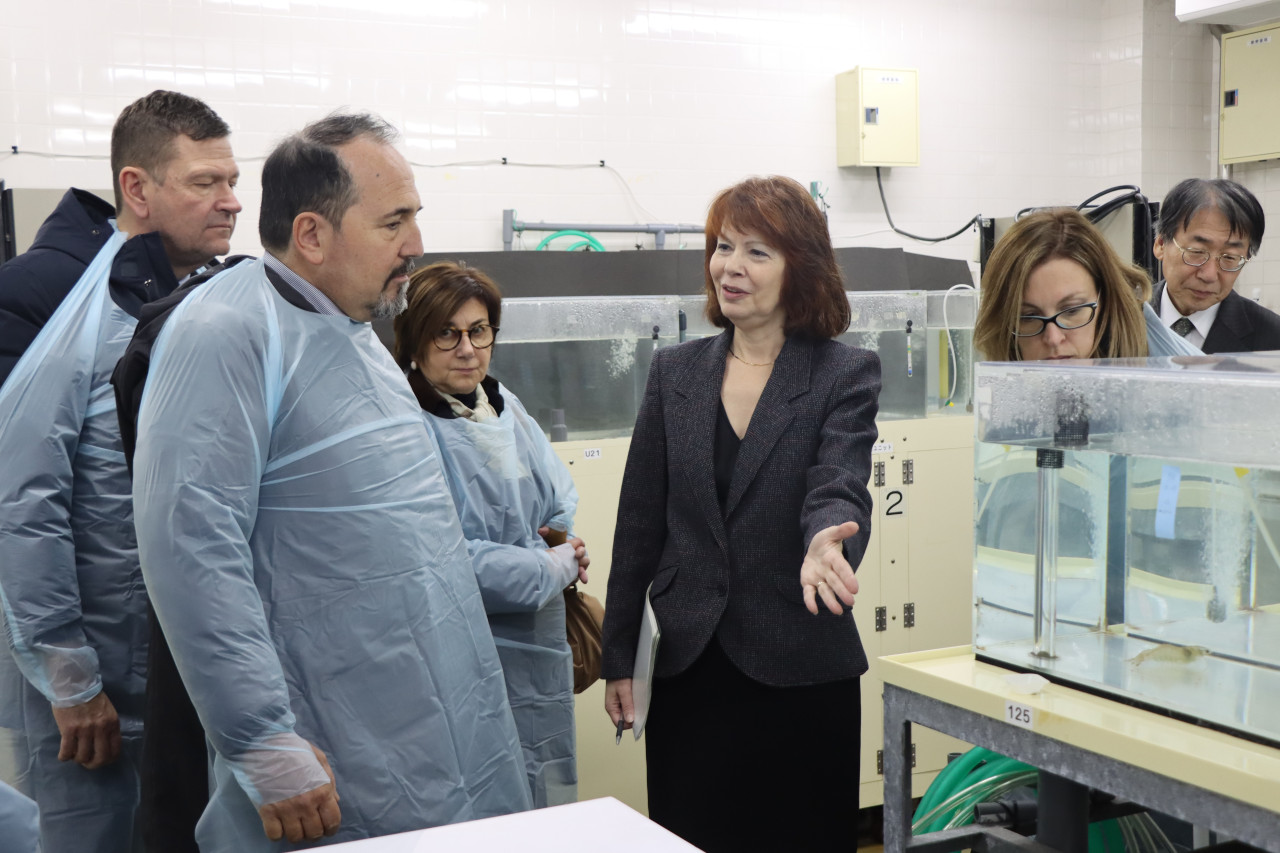 国際農研の概要紹介に続き、ISMEAからは、CAP戦略の中で位置付けられた保険制度や相互扶助基金、全国相互基金AgriCATを中核とする農業リスク管理システムに加え、衛星データや機械学習を活用した干ばつ・洪水被害評価の事例が紹介されました。CREAからは、イタリア農業・食料産業の現状、研究体制や精密農業、デジタル技術等を通じた持続可能性向上への取り組みが説明されました。続いて、国際農研からは林慶一 環境プログラムディレクターが、生物的硝化抑制(BNI)技術を活用した窒素循環の改善と持続的農業生産に向けた研究の歩みと国際展開を紹介しました。また、エビ陸上養殖施設の見学も行われ、マーシー・ワイルダー水産領域プロジェクトリーダーが社会実装に向けた研究内容を説明しました。