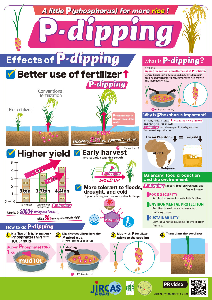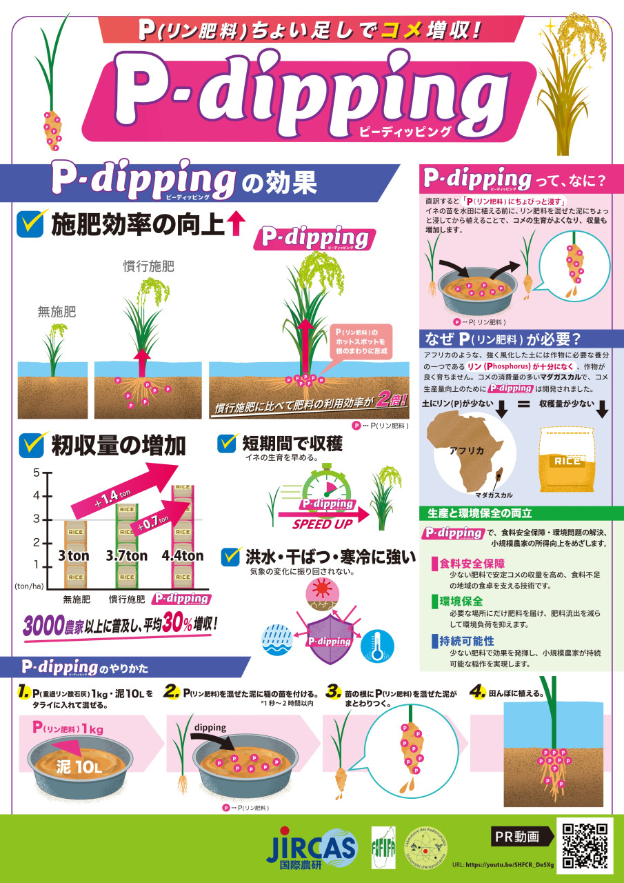 2026年4月、国際農研は、アフリカ稲作プロジェクトの研究成果として開発された施肥技術「P-dipping(ピーディッピング)」をわかりやすく紹介する動画およびインフォグラフィックポスターを公開しました。