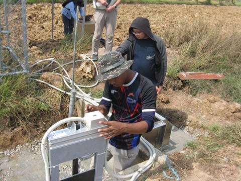 乾季の猛暑の中、日本からの出張した研究者、カンボジア側カウンターパート、プロジェクトスタッフの精力的な作業、及び現地の農家・作業員の協力により、予定通り設置が完了しました。皆様に感謝申し上げます。